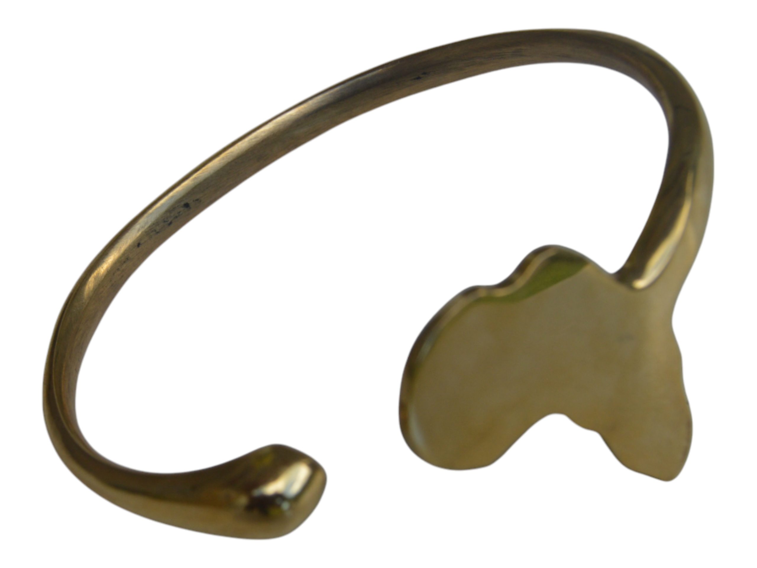 Set of thin brass and copper bangles with a wider, organically cut-out brass cuff.