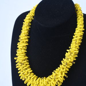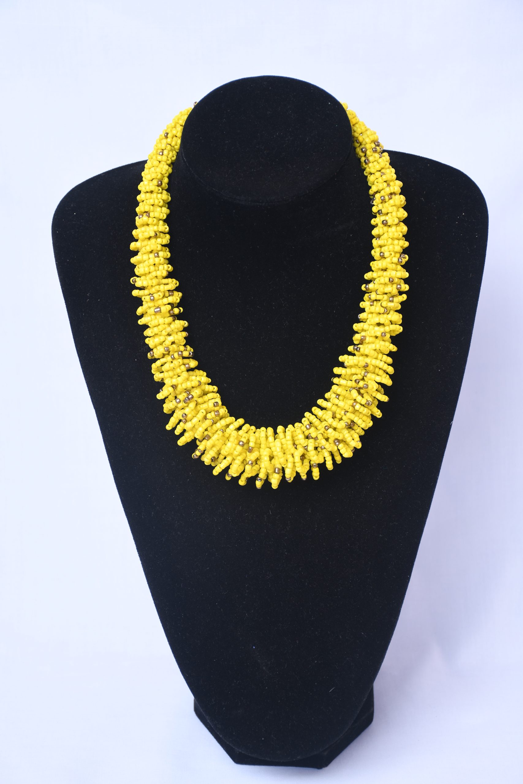 Bring a touch of the ocean’s vibrancy to your style with this textured yellow coral-style beaded necklace. The unique, coral-like beads create a striking and eye-catching design, adding a natural and organic feel to any outfit. This necklace is perfect for those who want to make a bold and stylish statement.